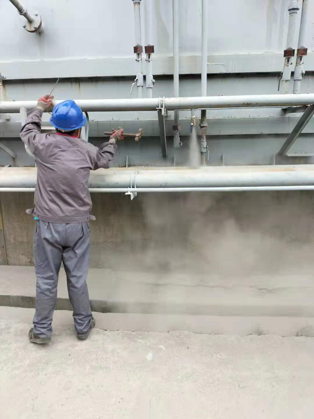 大型粉煤灰钢板仓的空气管道内壁清渣...